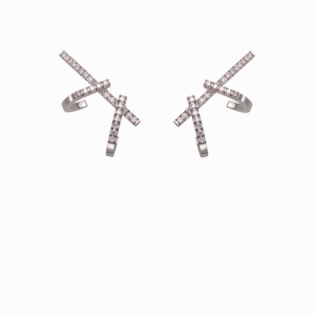 Pendientes daga doble en oro blanco y diamantes. Inspirados en las dagas de los guerreros árabes.