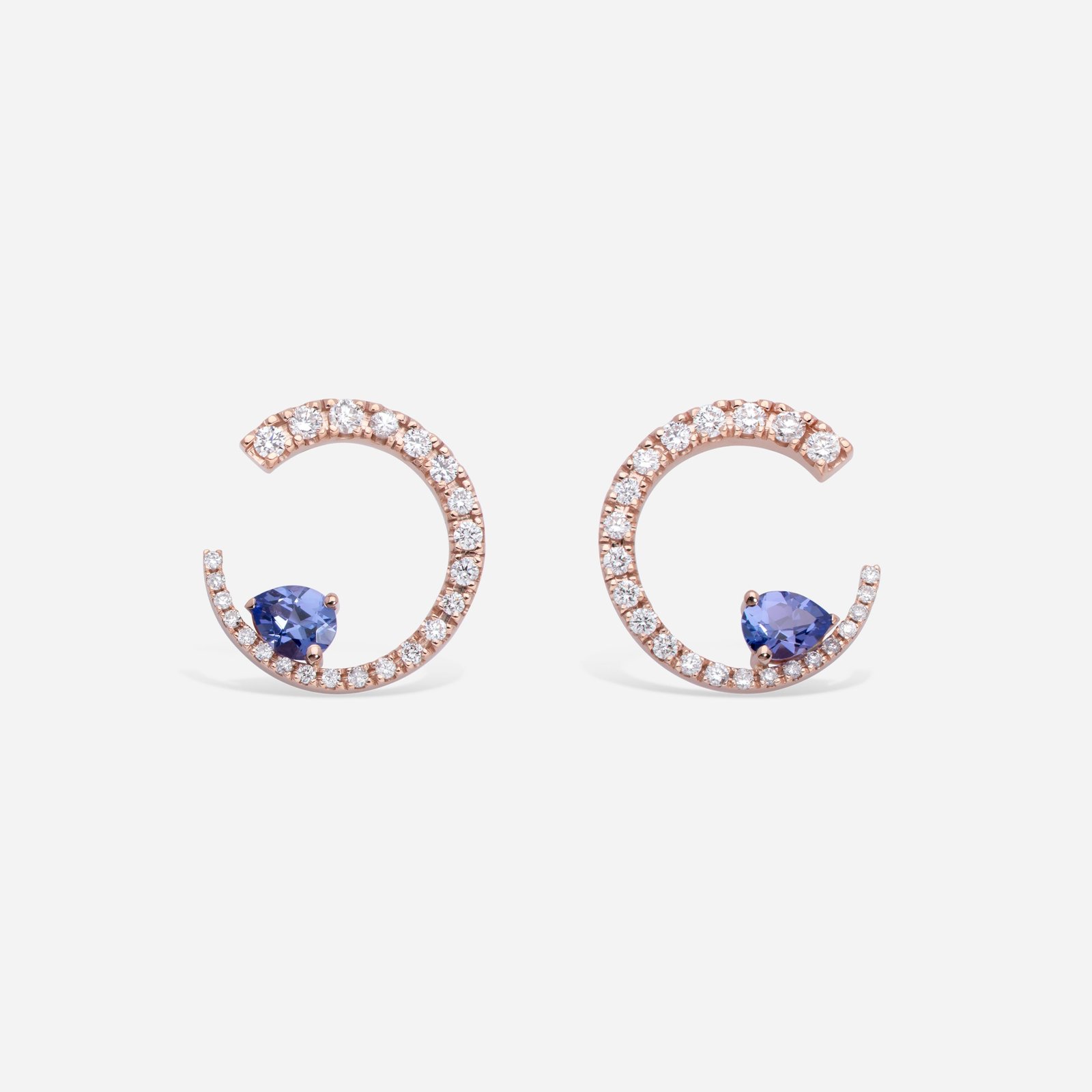 Pendientes en oro rosa 18kts, diamantes (0,60 cts) y tanzanitas (0,60 cts). Diámetro exterior: 16 mm.